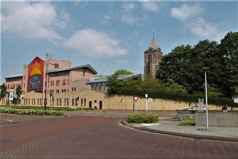op het gemeentehuis en kerk Onze Lieve Vrouw ten Hemelopneming